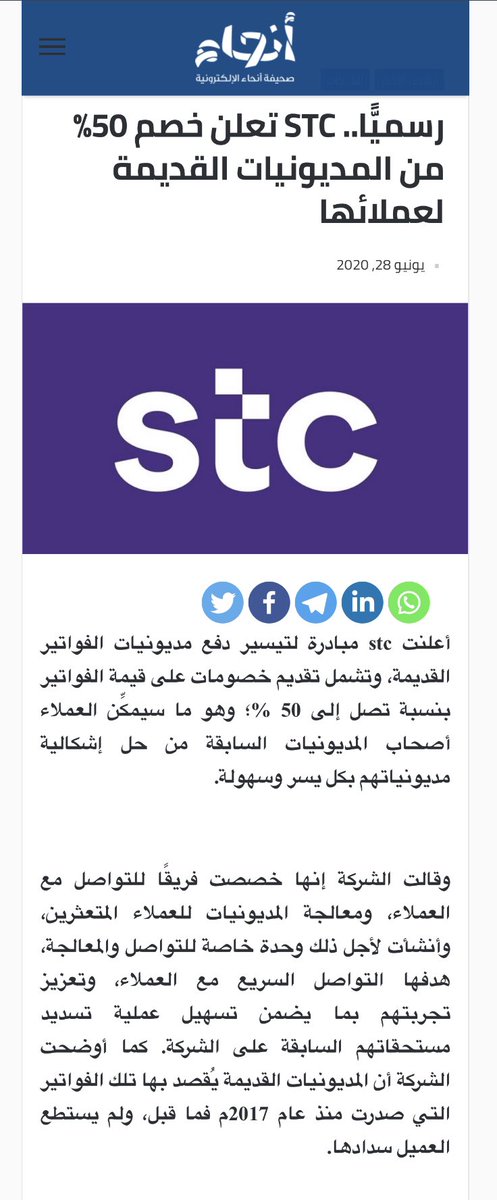 أخبار السعودية هام V Twitter هام أعلنت شركة Stc عن مبادرة لتيسير دفع مديونيات الفواتير القديمة وتشمل تقديم خصومات على قيمة الفواتير بنسبة تصل إلى 50 مما سيمكن